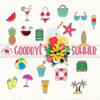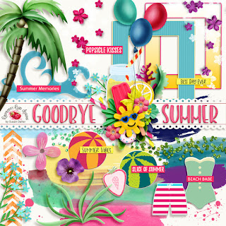Hi everyone! Susan coming to you with my new collection Goodbye August. Summer is almost gone and so we'll want to document the last of our summer memories with this new kit. This collection is filled with so many different types of summer themed goodies and the fun bright colors are spot on for capturing the mood.